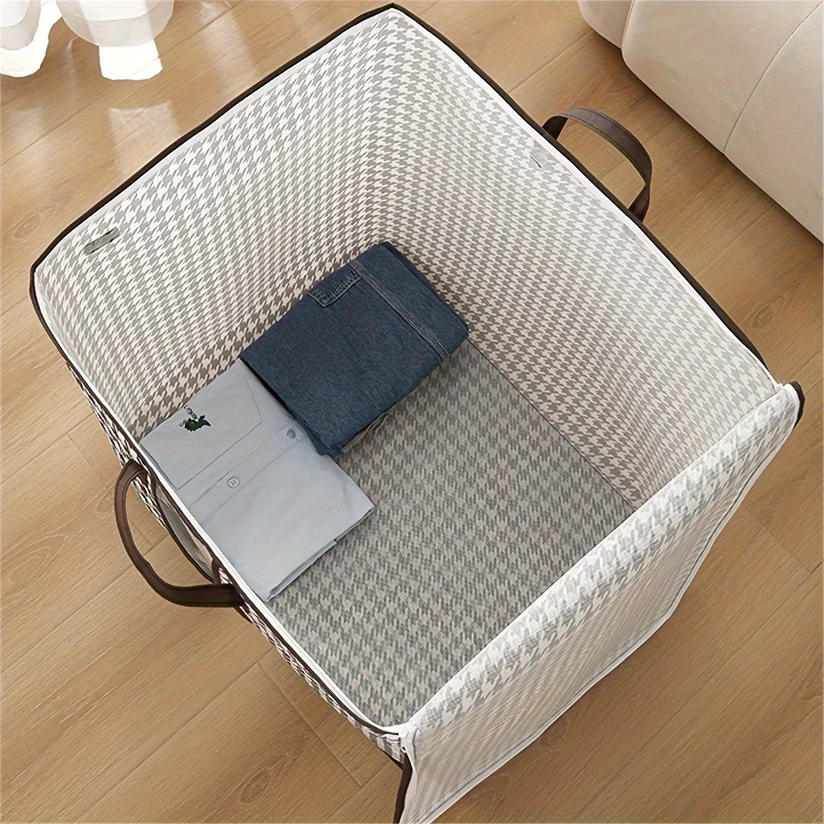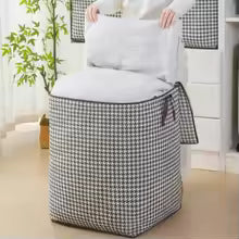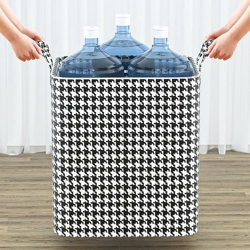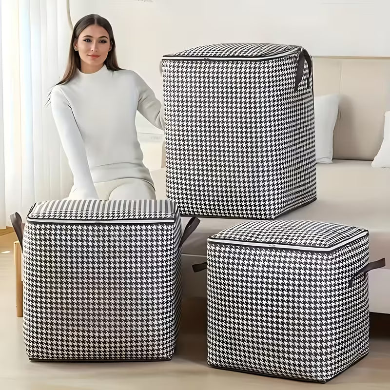 Set de 3 huse mari de depozitare alb-negru, economisește spațiu și ordonează hainele sezoniere. Vezi instant ce păstrezi, fără timp pierdut căutând lenjerii sau pături în sertare încurcate.