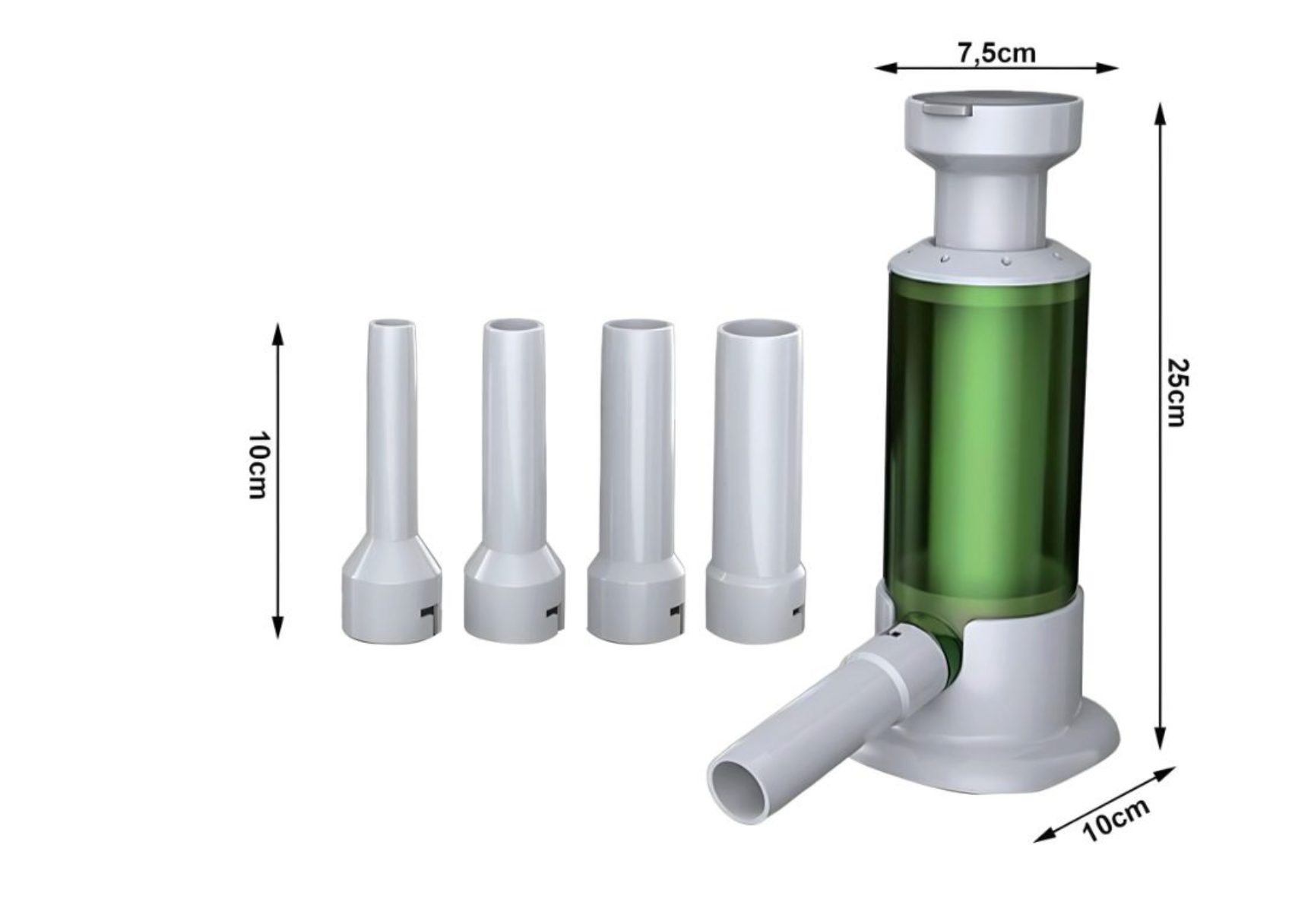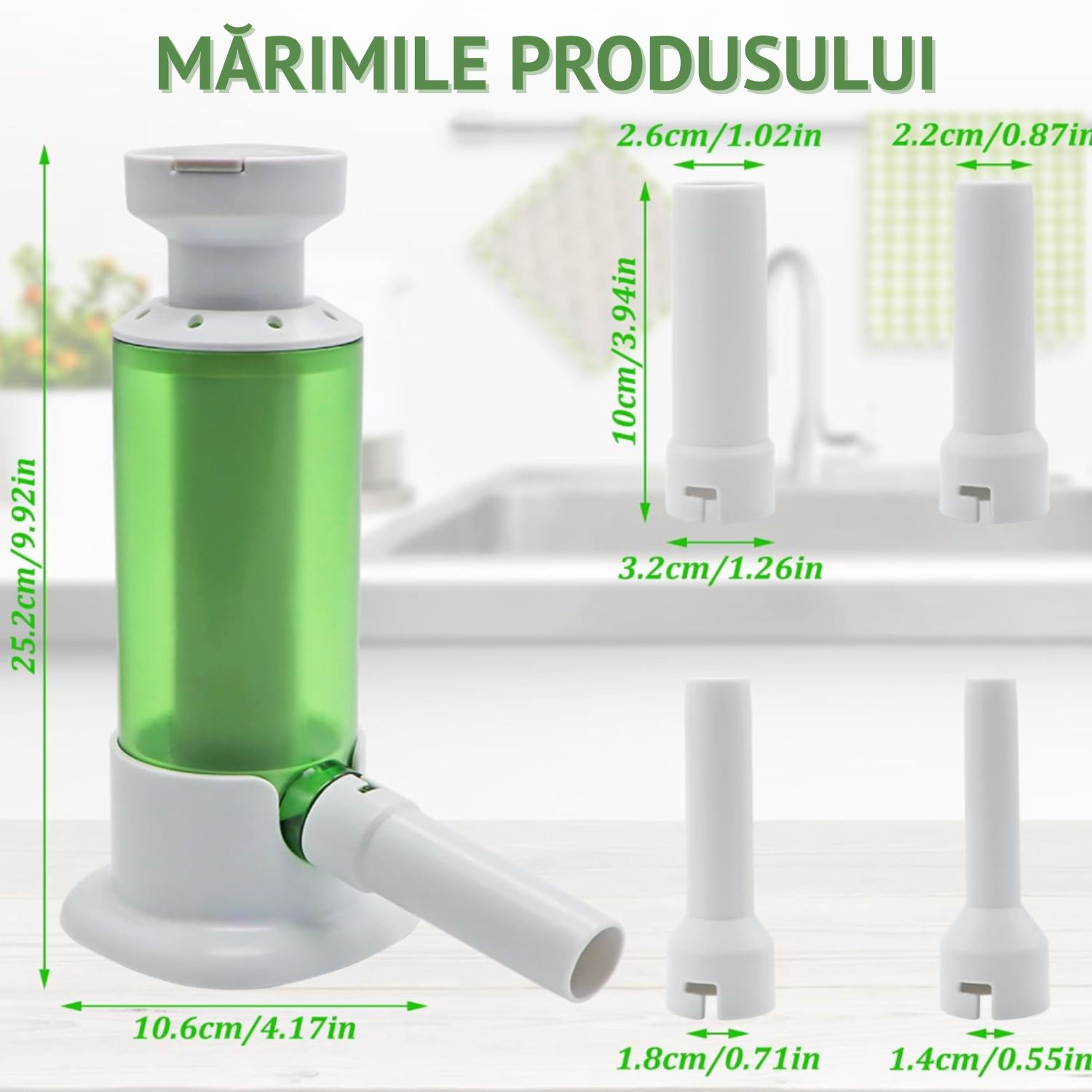 Mașina include 4 tuburi de umplere pentru diferite dimensiuni, astfel încât să poți alege exact mărimea dorită.
