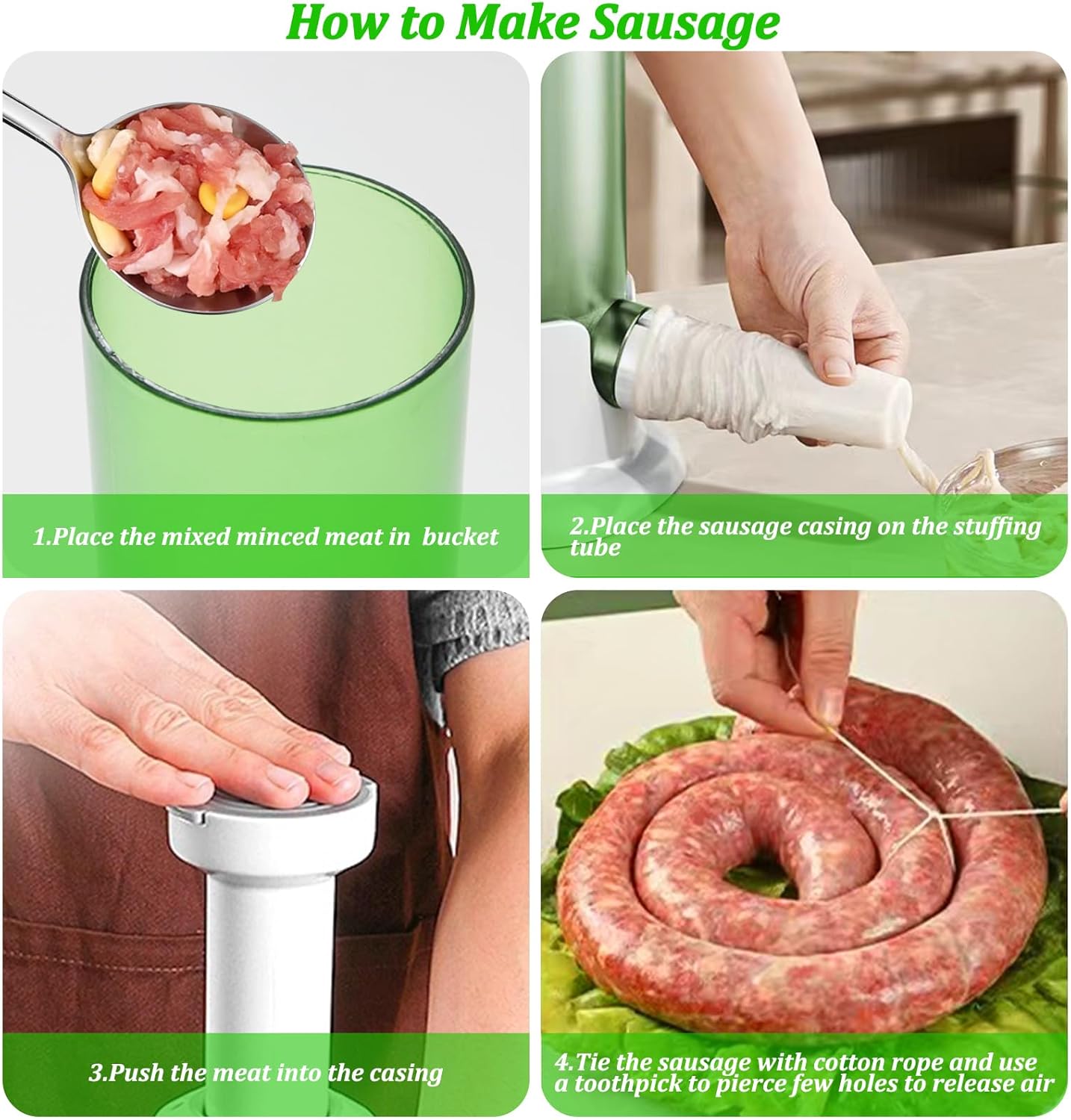 Cu cele 4 tuburi de umplere incluse, poți realiza cârnați de diferite dimensiuni și forme. Transformă fiecare masă într-o aventură culinară diversificată și gustoasă.