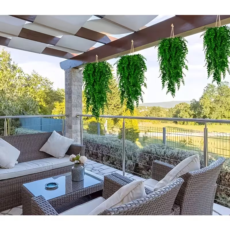 Ghirlanda de frunze artificiale adaugă instant valoare vizuală și ordine. Se agață rapid, ascunde cabluri sau cutii inestetice și oferă o zonă organizată pentru obiecte uzuale. Ideal pentru bărbați care vor un balcon sau birou curat, cu aspect profesional și plăcut, fără întreținere.